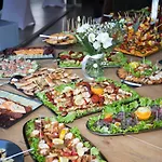 Das Hotel bietet jeden Tag ein kostenloses Frühstücksbuffet an. Auf dem Hotelgelände können die Gäste das Restaurant Carpe Diem und die Kaffee- Bar besuchen.